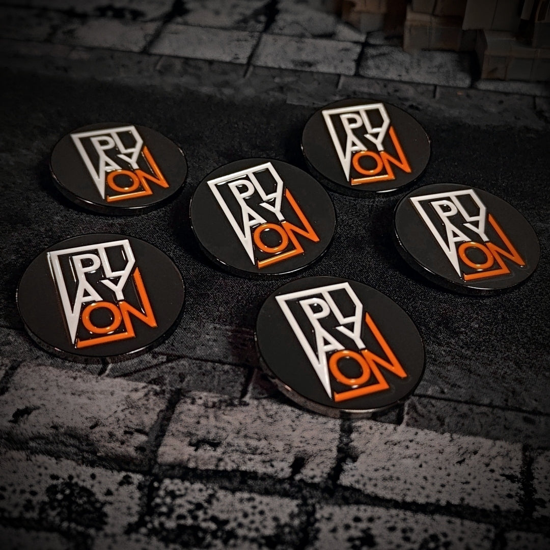 Designed by Play On Tabletop and produced in collaboration with Baron of Dice. These objective coins are independent accessories and not affiliated with any other tabletop gaming brand.